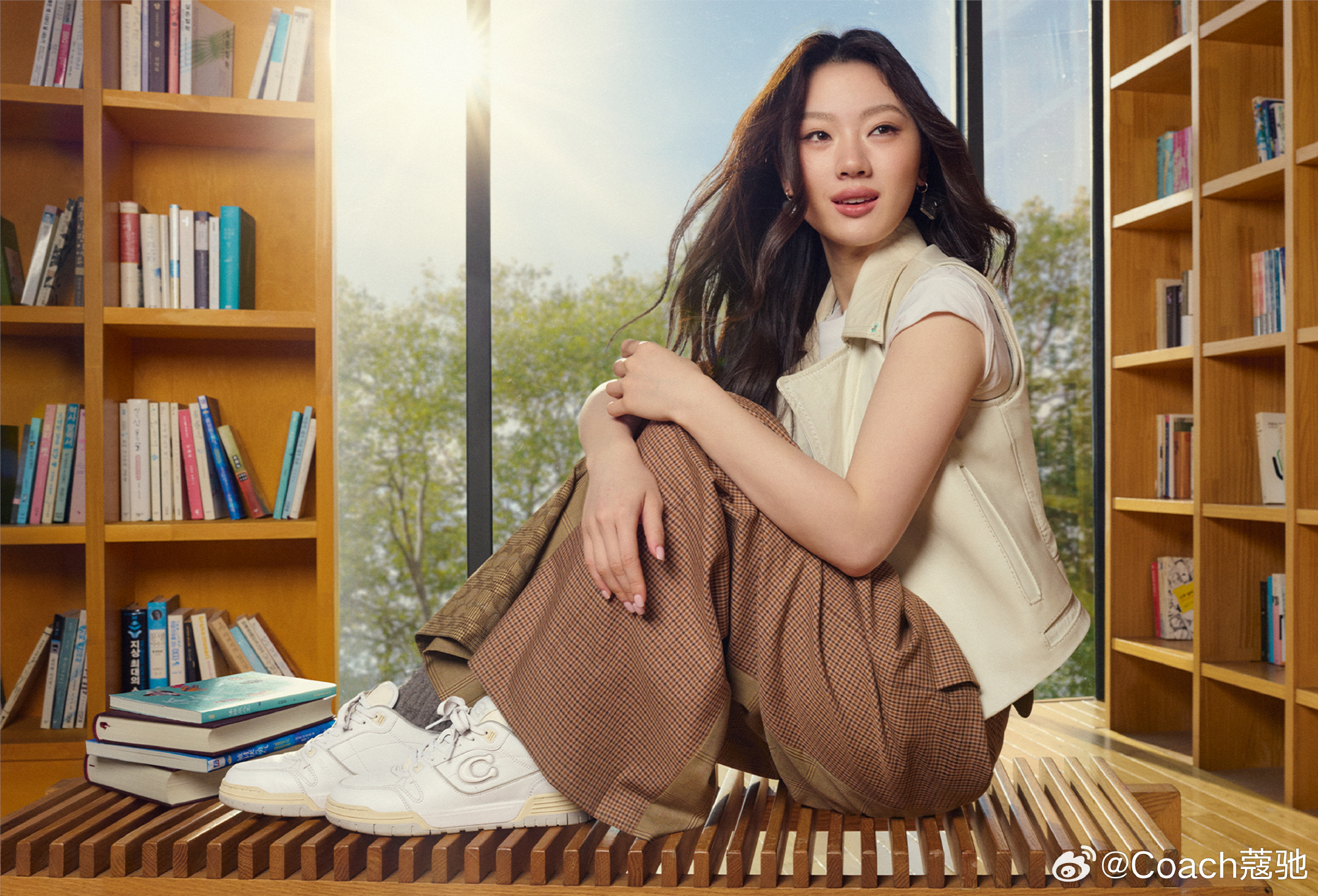 在发布的代言大片中,单依纯活力上身 COACH 2026 春季系列并演绎了一位在图书馆中寻找真我的女孩的故事,呼应品牌即将上新的书本手袋挂件。用心去经历和感受他人的故事,也勇敢表达自己的所思所想,未来双方也将携手一起从容落笔,开启全新真我篇章。
