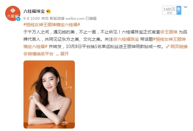 六桂福珠宝官宣全新品牌代言人王丽坤