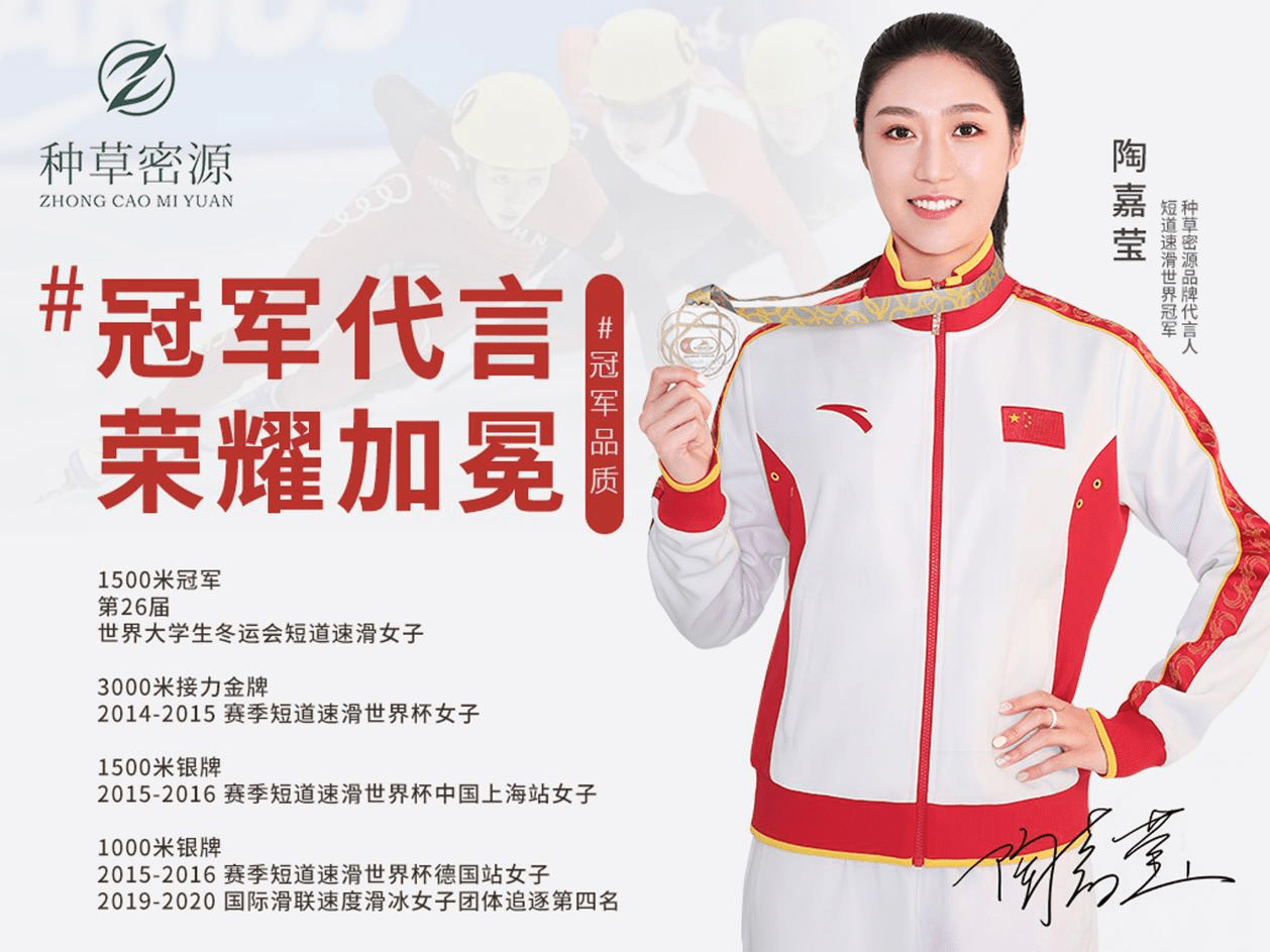 种草密源正式与短道速滑世界冠军陶嘉莹签约,成为品牌代言人!