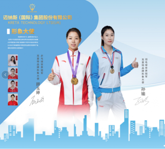 迈纳斯(国际)集团股份有限公司宣布羽毛球世界孙瑜(明星代言公司)、乒乓球世界,顾玉婷(明星代言公司)、蹦床世界,涂潇(明星代言公司)、跳水世界,刘甜(明星代言公司)、跳水世界,连婕(明...