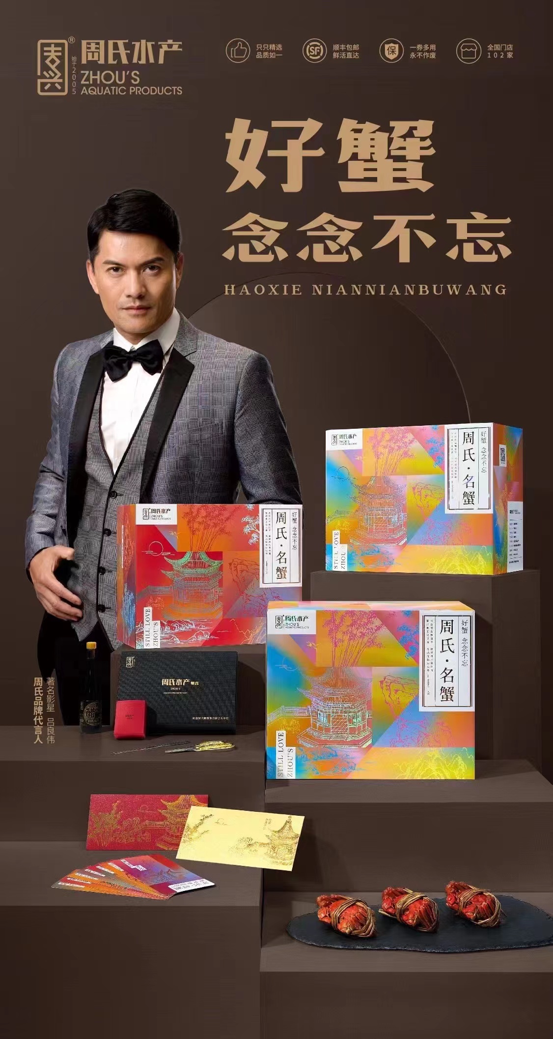 周氏水产代言人影视巨星吕良伟(明星代言公司),好蟹 念念不忘