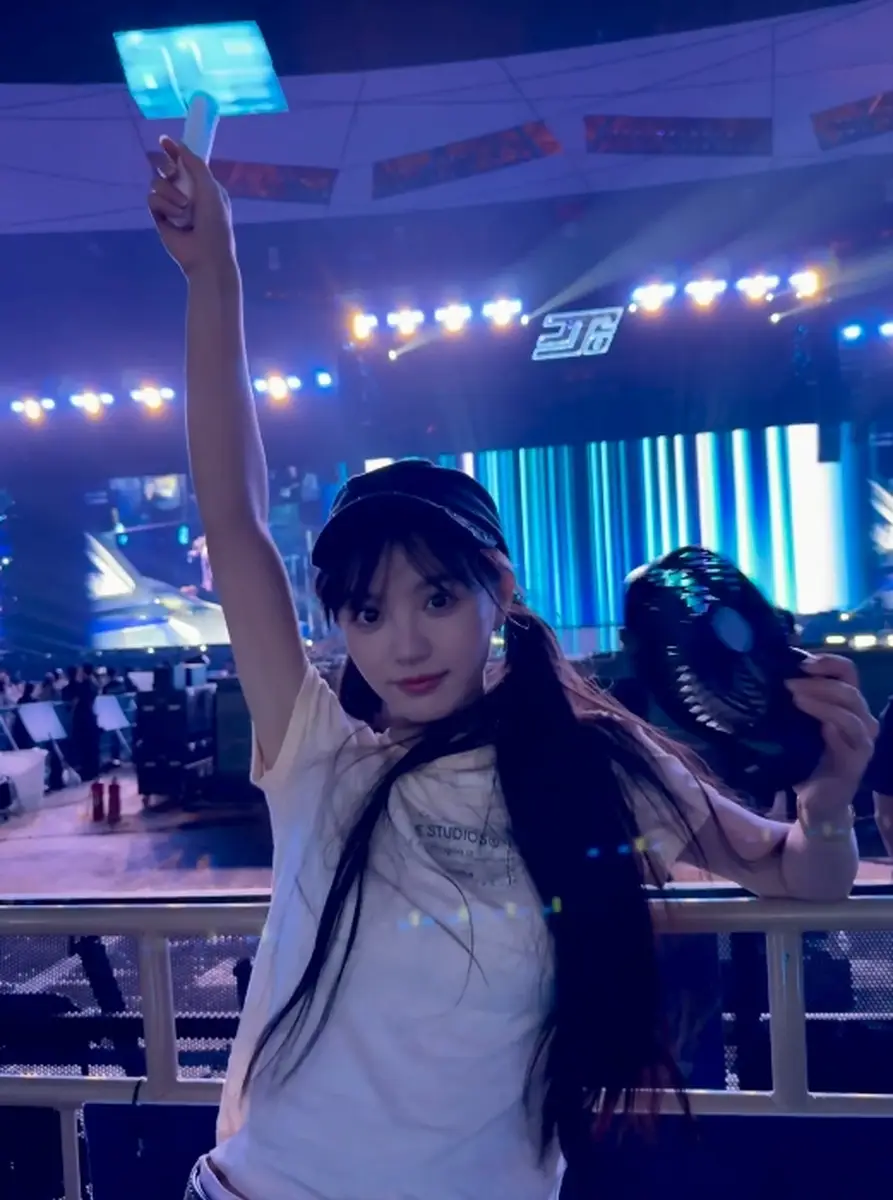 曦薇现身林俊杰北京演唱会 扎双马尾露甜笑超可爱