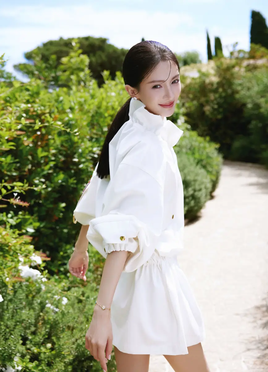 金晨穿白裙漫步法国小镇 无尽绿荫旁寻仲夏之梦
