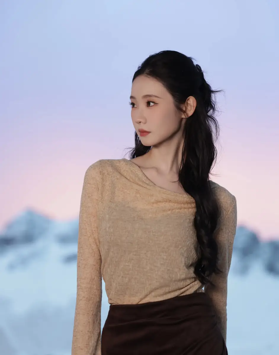 张艺凡侧颜出镜,斜肩针织衫温柔清冷。