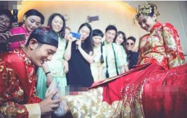 今日,曝光一组黄晓明Baby婚礼的照片,包括新郎化妆,迎娶新娘的小桥段,照片中,黄晓明与Baby秀尽恩爱,黄晓明为爱妻穿上水晶婚鞋、牙咬Baby金手镯,十分搞怪。