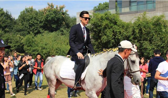 胡歌骑白马“走”红毯 帅气现身遭粉丝围堵