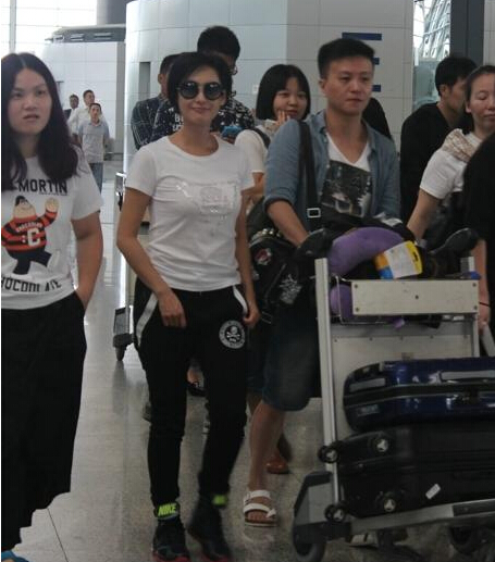 43岁朱茵现身机场上围丰满 逗萌娃开心显亲切