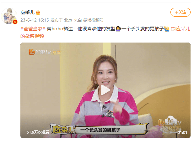 应采儿回应把小儿子当成女孩养:会让他继续留长发