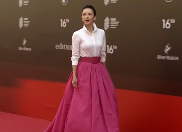 FIRST青年电影红毯:章子怡玫红长裙艳压全场,马丽袁泉穿姐妹装
