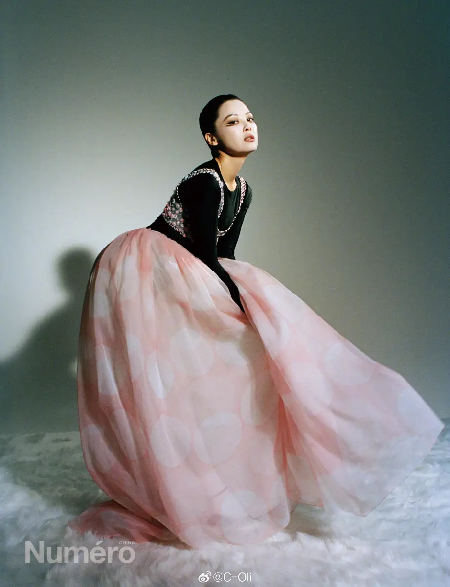 辛芷蕾裙摆微扬,黑白大片光影质感十足。