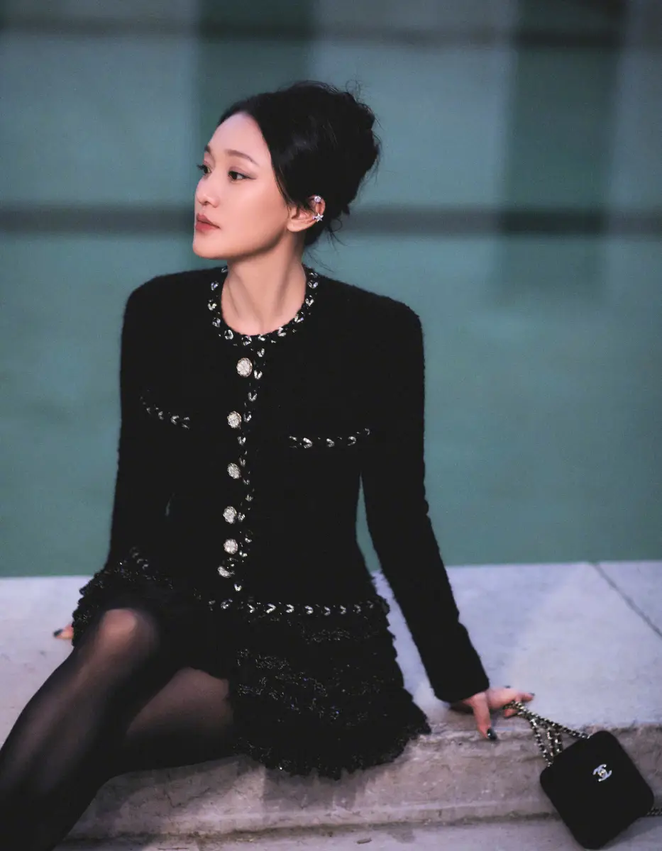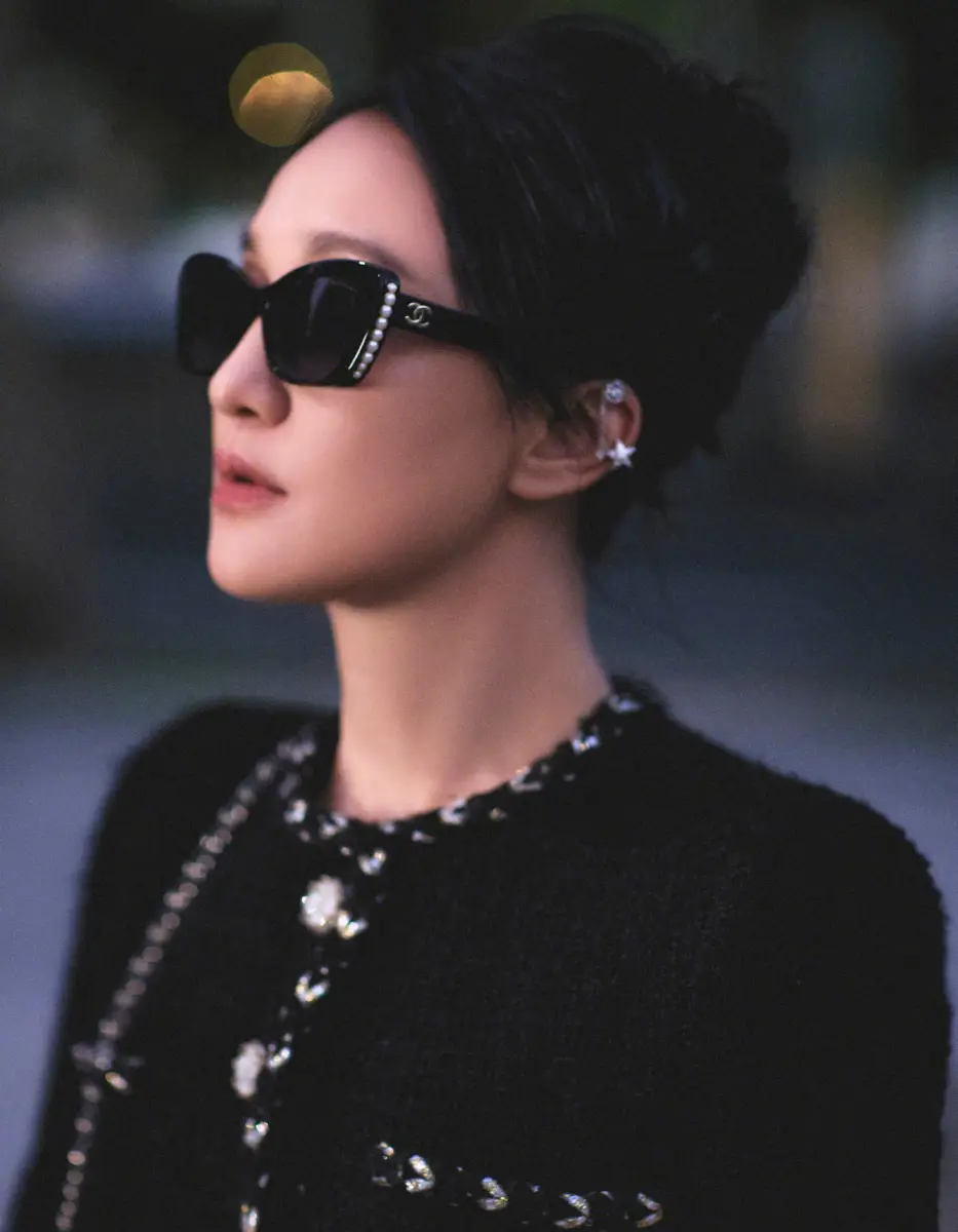 25日,周迅(明星代言费)在巴黎看秀的一组最新造型写真曝光,她戴着墨镜,身着黑色小香风套装,酷范儿十足,气场全开!