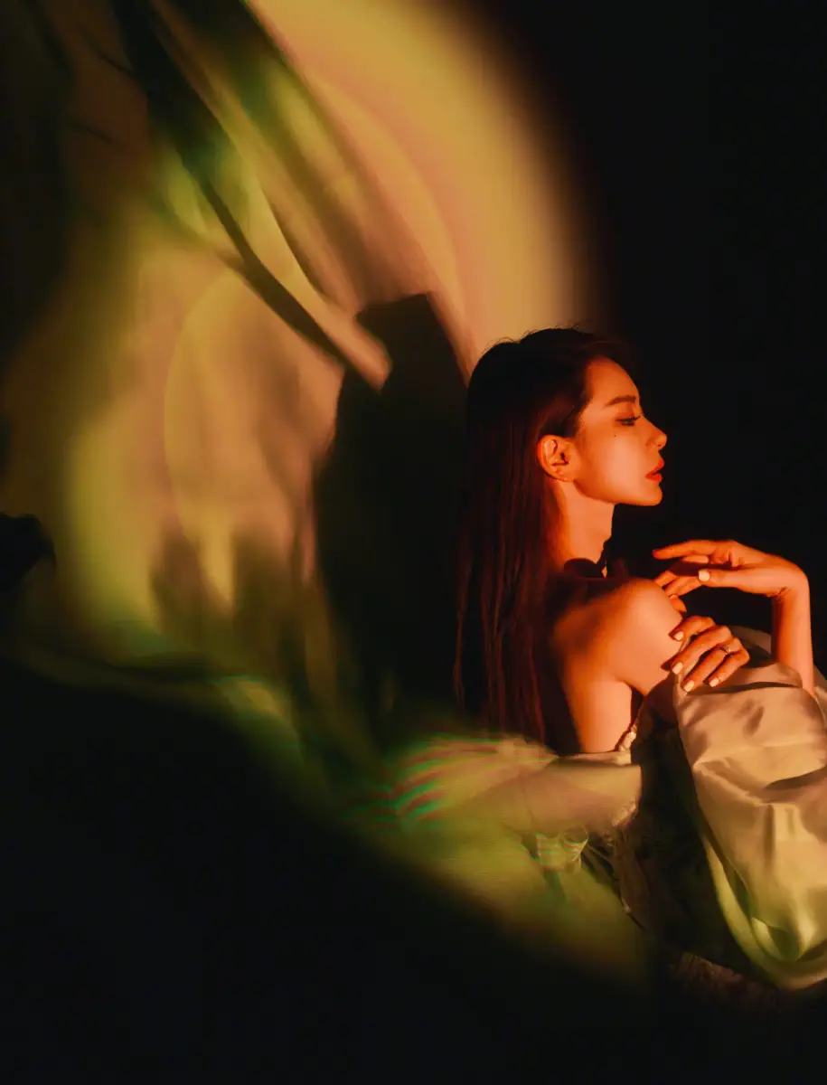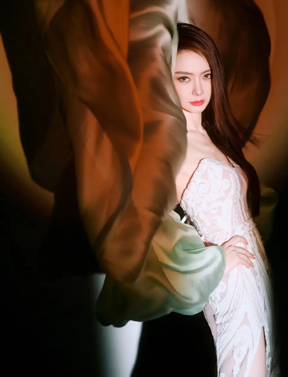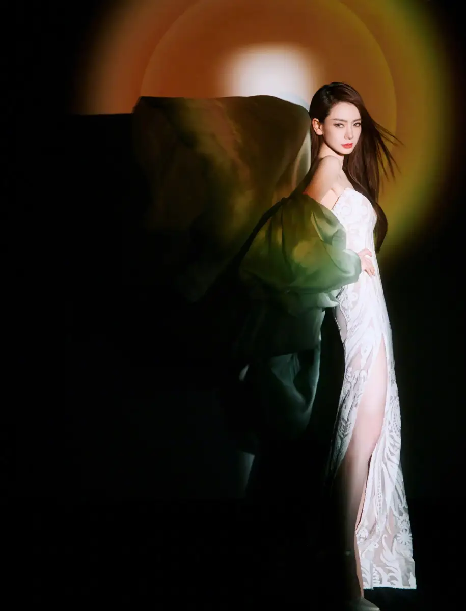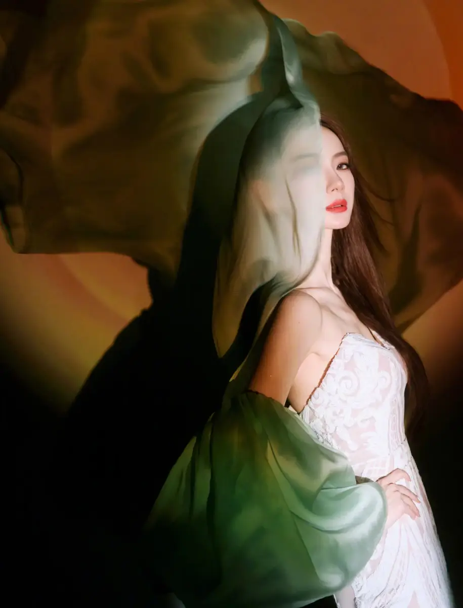 戚薇穿白蕾抹胸裙性感妩媚 配绿色飘带张力满满
