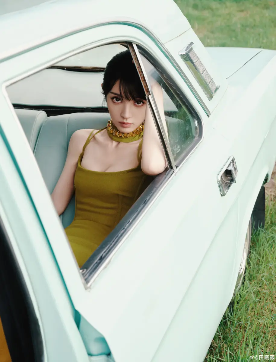 田曦薇坐在车里又A又飒。