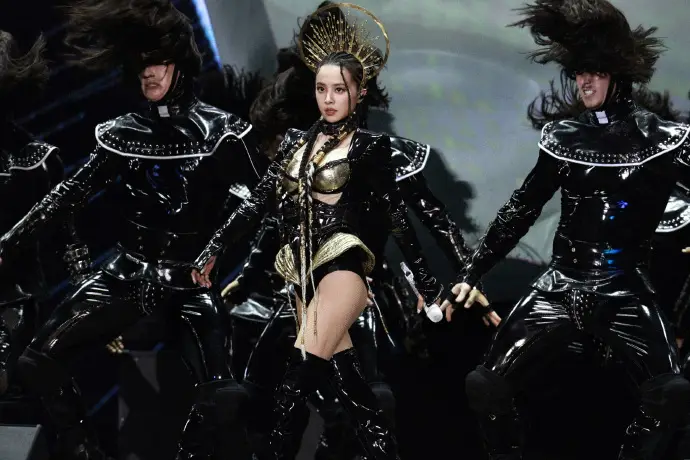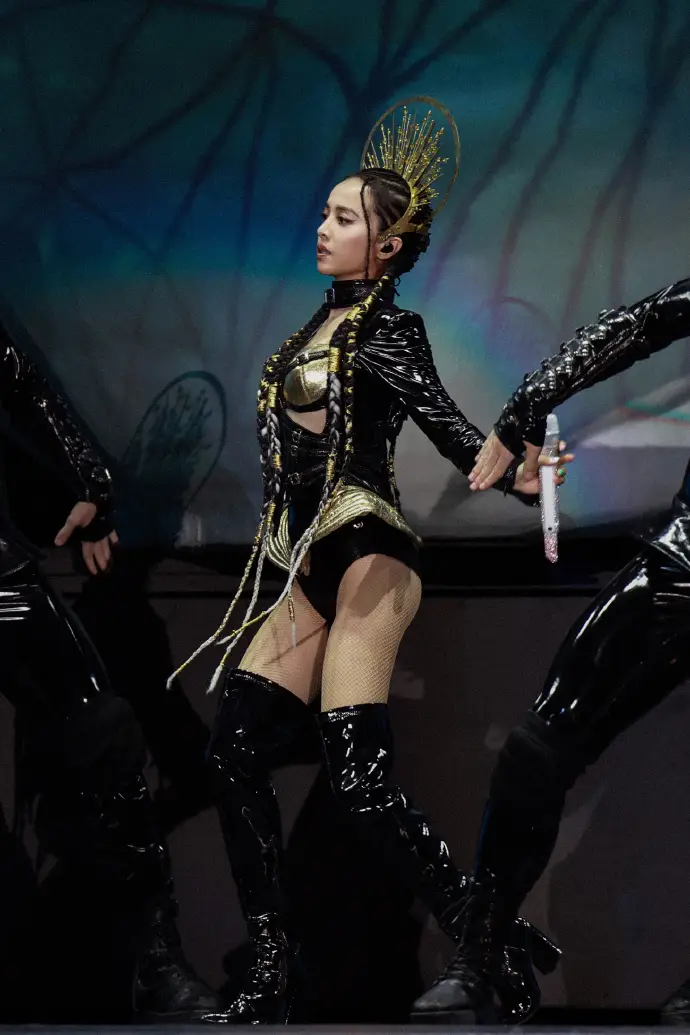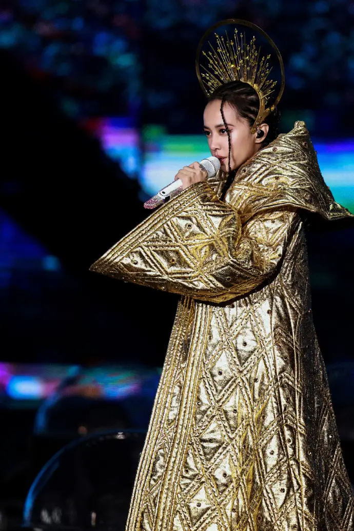 蔡依林演唱会造型霸气美艳 带王冠穿金袍气场强大