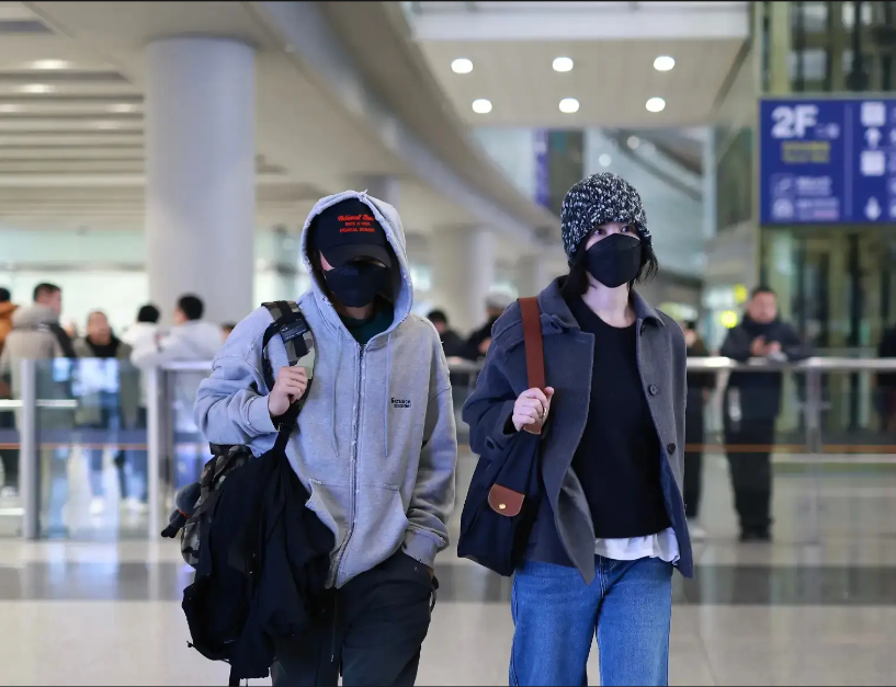 谢霆锋王菲时隔一年再同框 穿着休闲走机场好般配