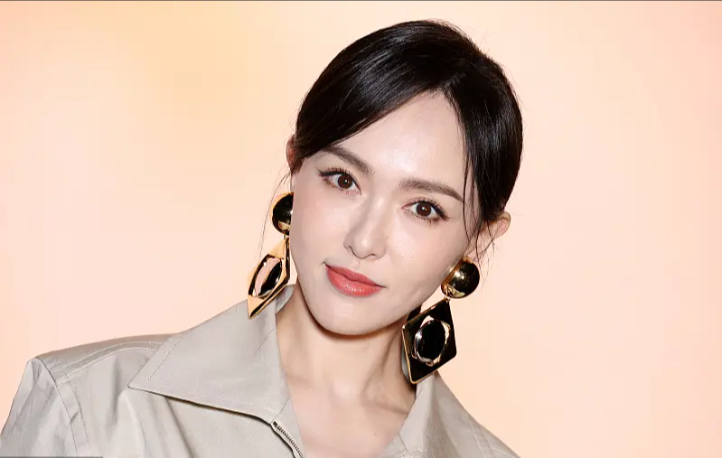 唐嫣穿米咖色连体裤比例超绝 扎低丸子头温柔干练