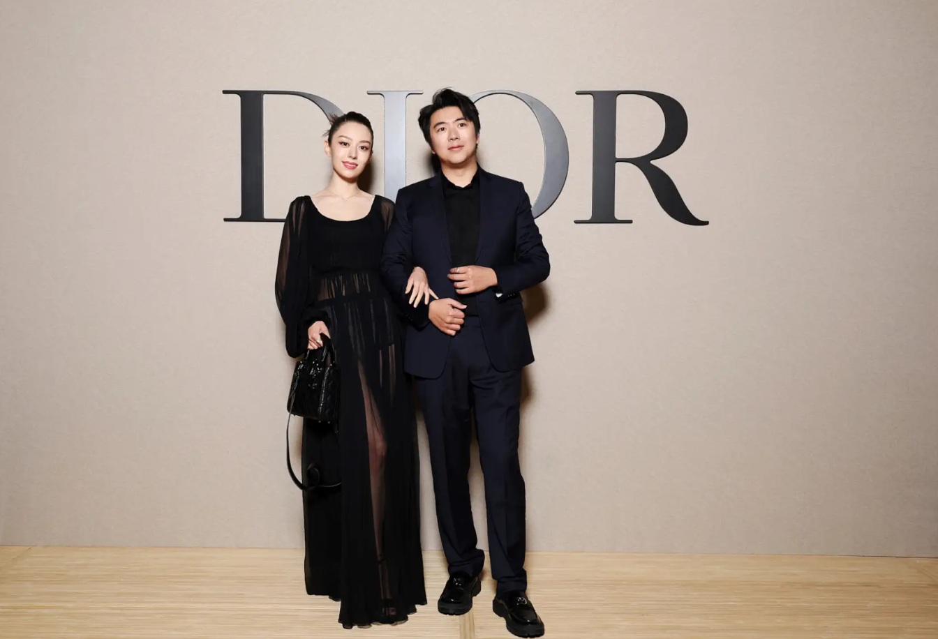 2024年2月27日,法国巴黎,2024秋冬巴黎时装周,郎朗与妻子吉娜·爱丽丝出席Dior品牌观秀。