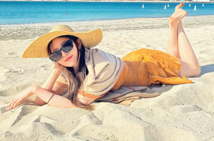 刘亦菲海边沙滩美照曝光!穿黄色抹胸短裙秀好身材