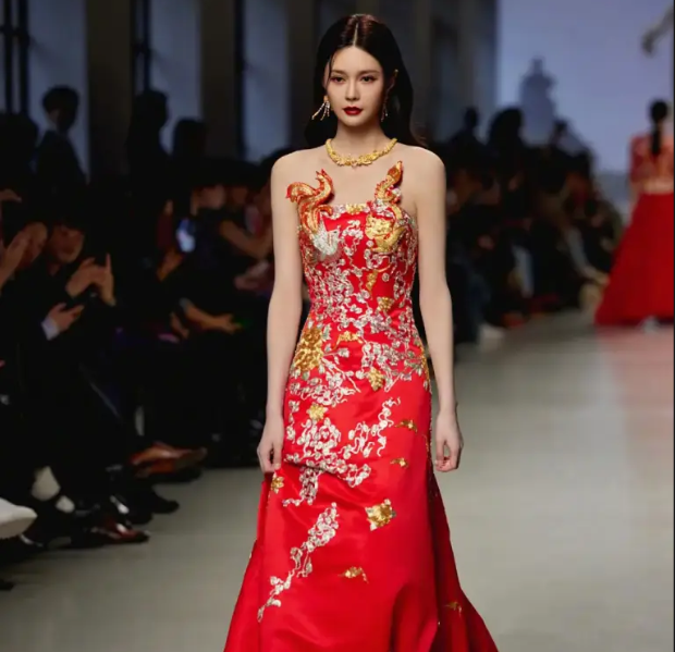 近日,沈梦辰在社交平台上发布了一组走秀美图。沈梦辰(明星经纪公司)一袭龙纹正红色旗袍,彰显新中式魅力。