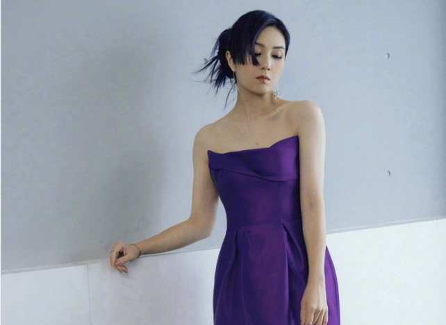 杨千嬅出席央视财经晚会 紫色抹胸造型温婉大气