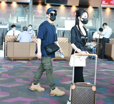 潘玮柏夫妇现身机场 妻子推行李男方只顾耍帅