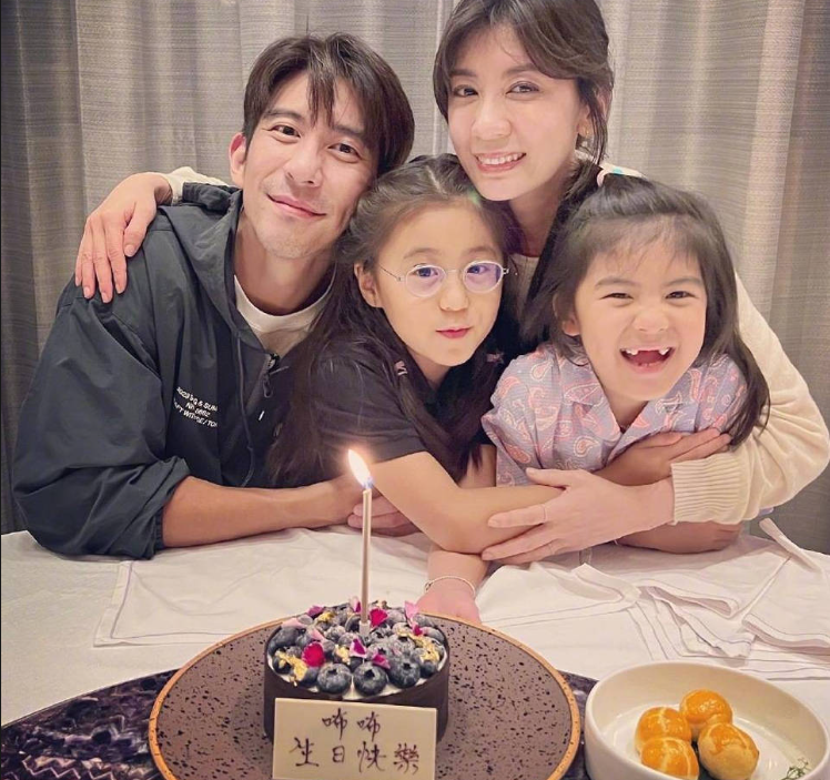 郭富城高调晒照为老婆方媛庆生 一家四口画面温馨