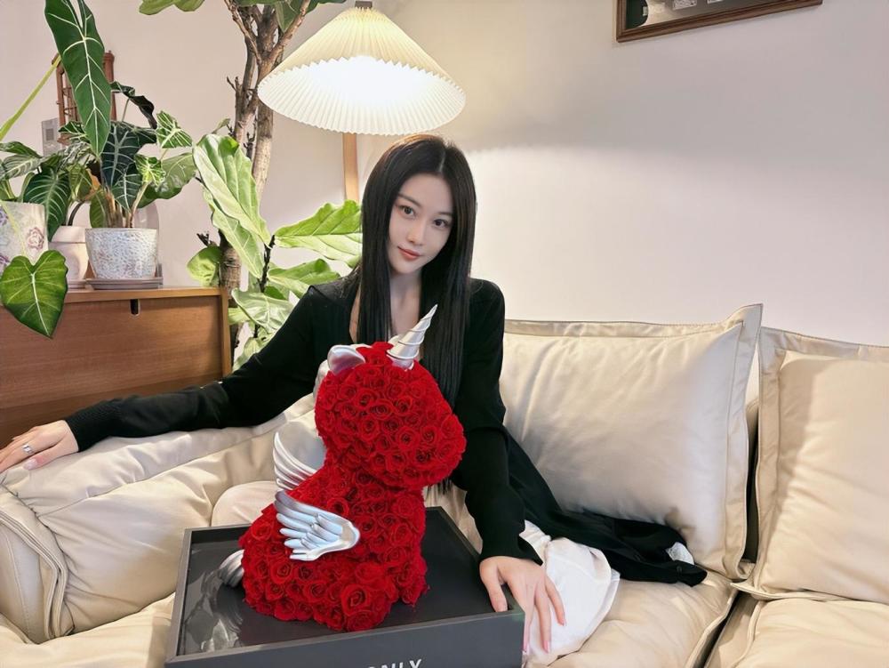 张馨予晒庆生照,老公何捷点赞秀恩爱,送老婆玫瑰花仪式感满满