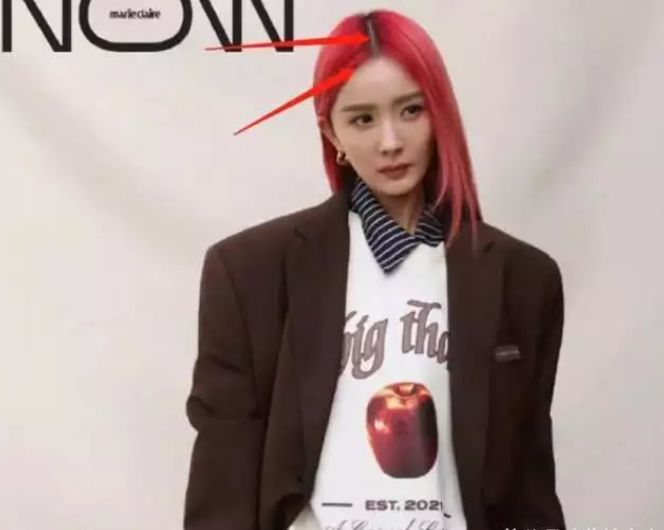 杨幂红发造型曝光,精修和未修图差距大,头发稀松还在强撑少女感
