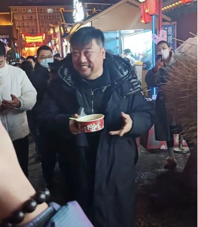 贾冰现身沈阳夜市被偶遇,手拿饭盒吃小吃接地气,遭围堵笑容满面